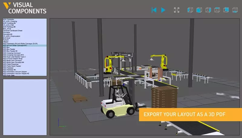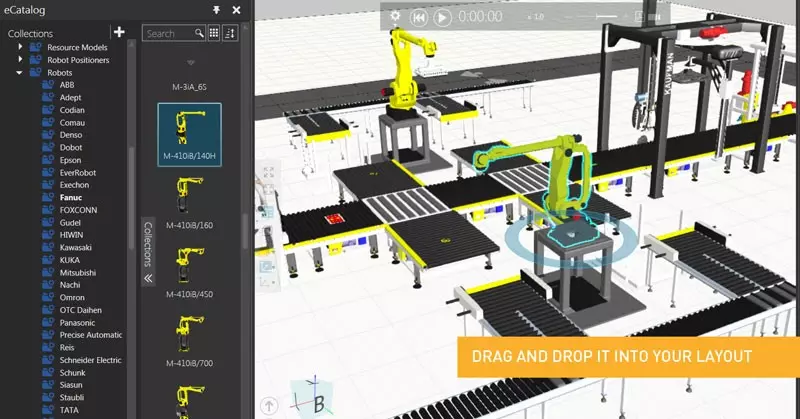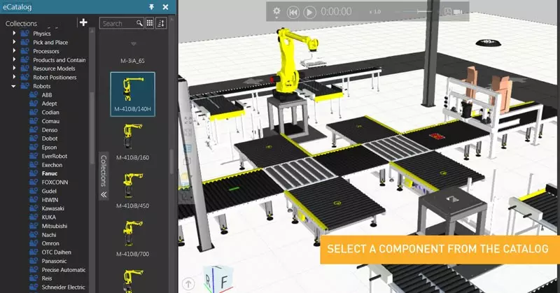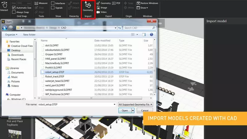 Una forma de configurar y crear diseños 3D rápidamente es utilizar modelos existentes de robots y otros equipos de una biblioteca de componentes predefinidos .